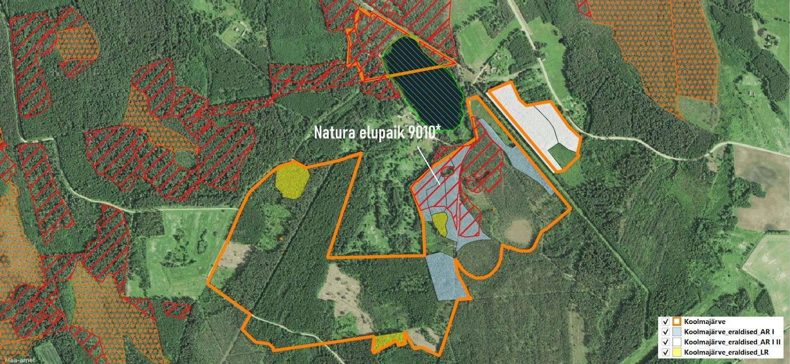 – Natura elupaik 9010*, seal on kavas aegjärkne raie. OLULINE on tähele panna inventeerija märkust: “Mänd kuni 180a; tavaline palumets, üsna üheealine, kuid puhkemetsana oluline; arvestades suurt raiekoormust ümbruses, vältimatlult vajalik säilitada; oluline rekreatiivsest seisukohast; raie+teed Elupaik on tekkinud ühe tüki lahutamisel mitmeks”